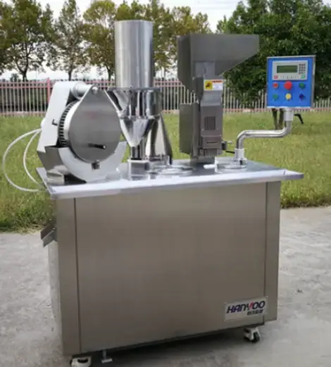 The machine is adopted programmable control system, touch panel operation, stepless transduction speed shift with output display functton. It can automatically complete the action of position, separation, filling, locking, etc. The filing dosage is accurate, and the operation is very convenient. The overall machine is made of good quality stainless steel and the machine is suitable for capsules which filled with powder and pellet.