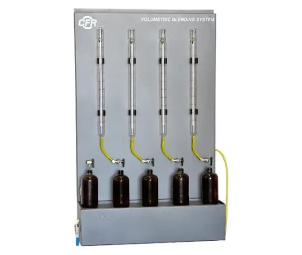 A complete standardized system for the volumetric blending of primary, secondary, and standard reference fuels.